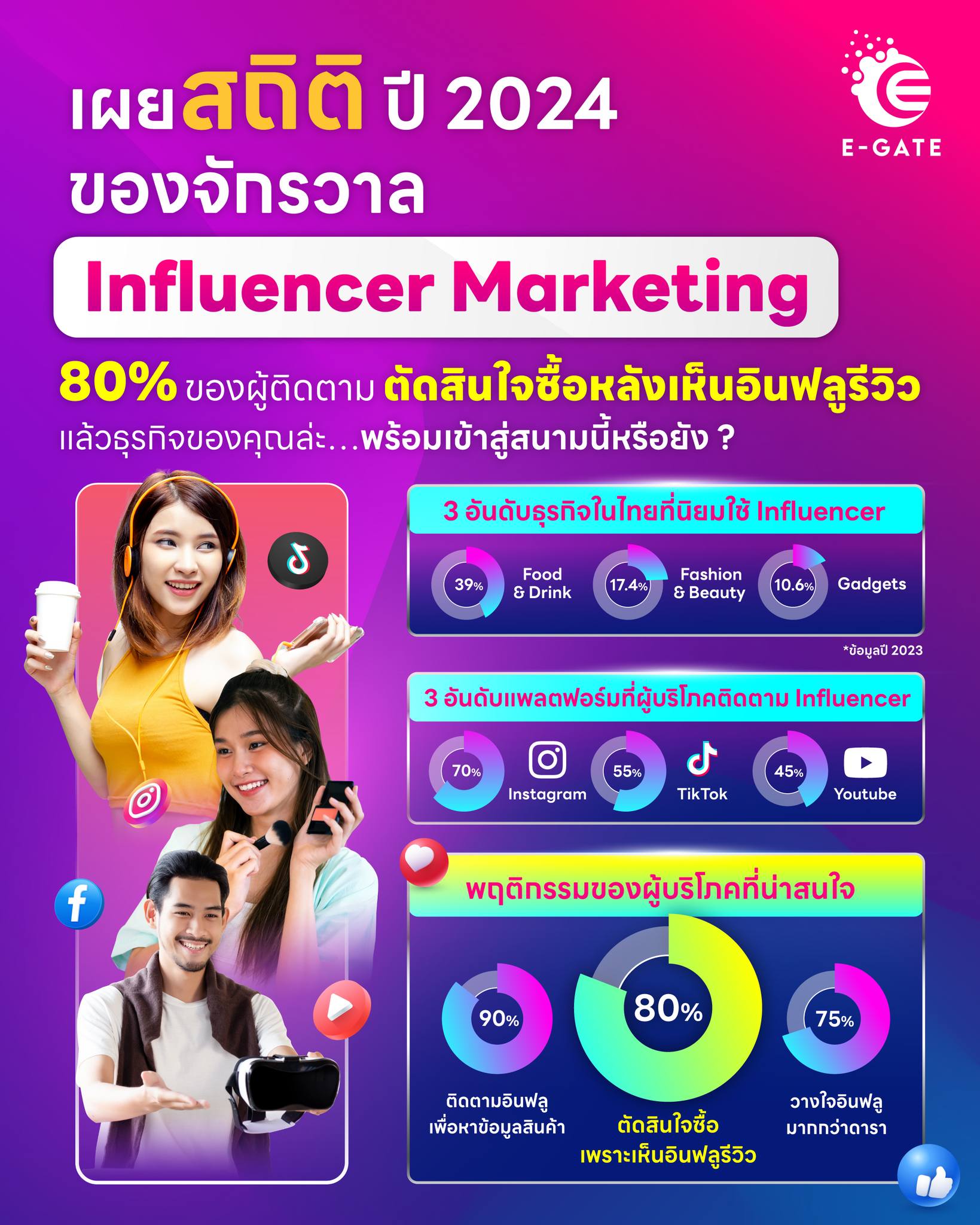 วันนี้ E-GATE ขอพาเหล่านักการตลาดมาอัปเดตสถิติที่น่าสนใจของการทำแคมเปญ Influencer Marketing ในปี 2024